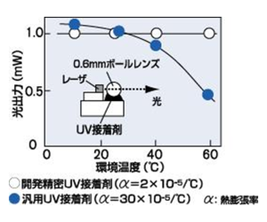 硬化時や温度変化に対する固定位置変動が極めて少ないため、サブミクロンオーダの接着固定が可能