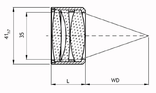 | Part No. | Length L (mm) | Effective focal length EFL (mm) | Working distance for 1064 nm mm | Working distance for 532 nm mm |