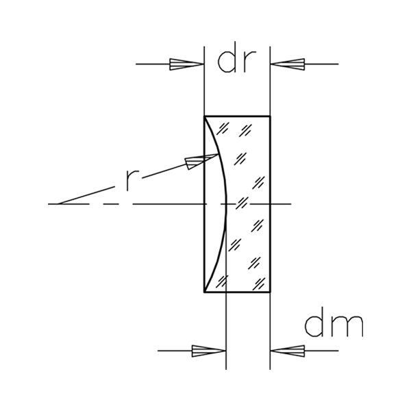 | 型番 | Focal Length [mm] | ⌀ [mm] | Centering Accuracy | Surface Quality | dm [mm] | dm Tolerance [mm] | dr [mm] | ⌀ Tolerance [mm] | s'248 nm [mm] | s248 nm [mm] | f'193 nm [mm] | f'248 nm [mm] | f'266 nm [mm] | f'308 nm [mm] |