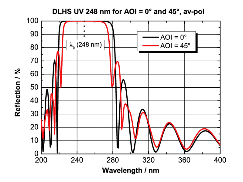 - 反射率 >99% @248nm AOI = 0°/45°(平均偏光)