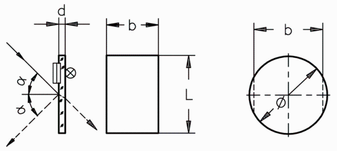 | 型番 | 製品名 | Thickness d [mm] | Size ⌀ or ⌀ x b [mm] | Tolerance ⌀ [mm] | Tolerance d [mm] | Flatness First Surface (λ) | Flatness Back Surface (λ) | Wedge Angle or Tolerance |