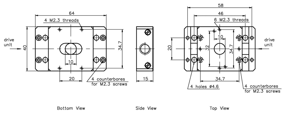 リニアステージは、セントラル、オフセットドライブ、マイクロメーターネジ付、微調ネジ付の4つのバージョンがあります。