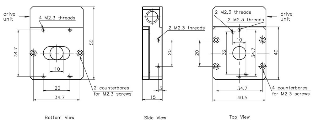 ステージ T 10 FとTS 10 Fは0.25 mmピッチの微調ねじが付いています。