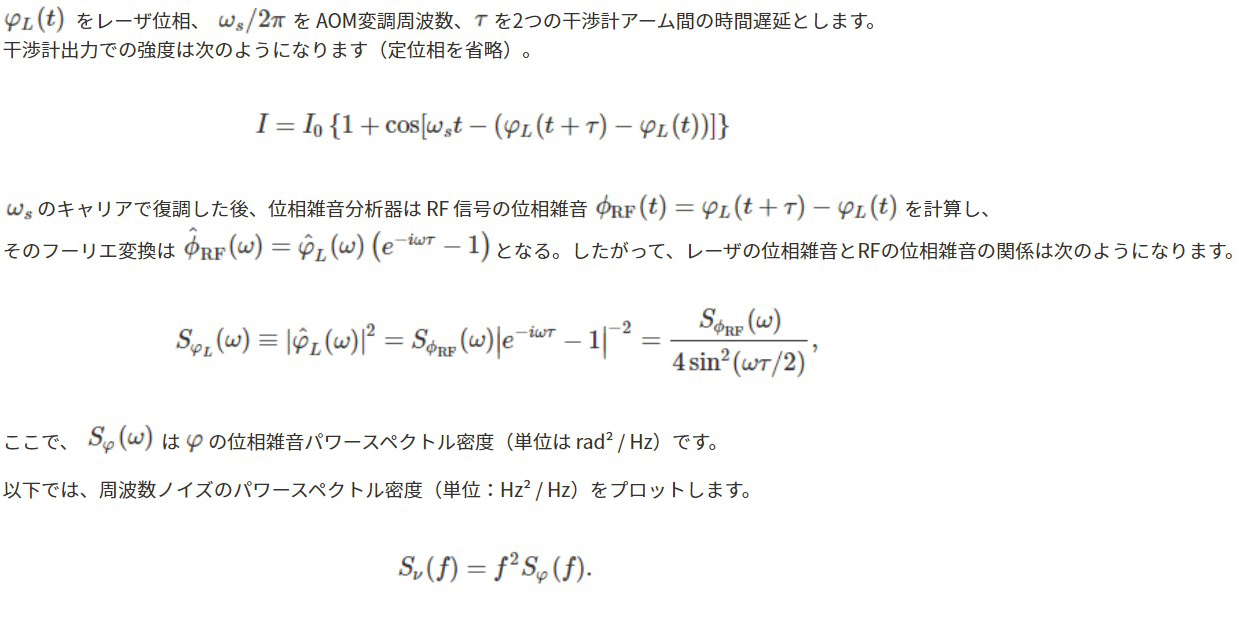 RFの位相雑音をレーザーの位相雑音に変換するためには、干渉計の遅延時間を知る必要があります。