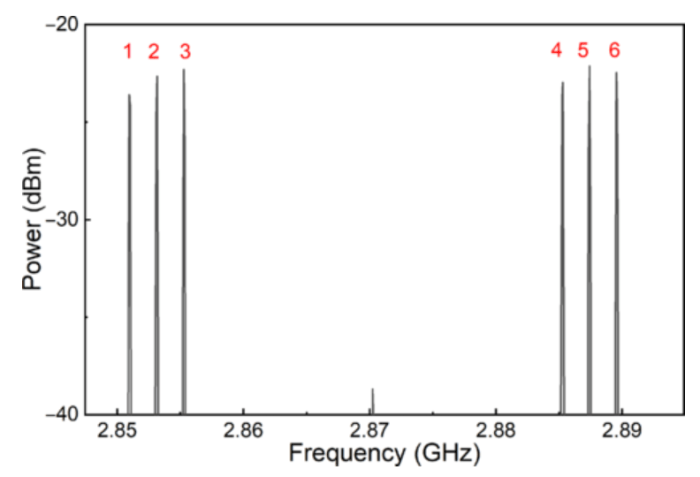 6つのNVセンター遷移すべてを同時に励起するマイクロ波信号が得られました。