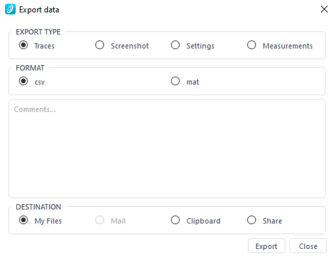 測定・生成されたパターンを、「.CSV」または「.MAT」ファイルとして、ワンクリックでコンピューターに直接エクスポートできます。