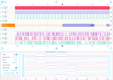 内蔵のパターンジェネレータを使用して、標準またはカスタムのマルチピンパターンを出力できます。プロトコルデコーダを追加して、UART、SPI、I2C、I2S、CAN、またはパラレルバスプロトコルの応答を分析します。